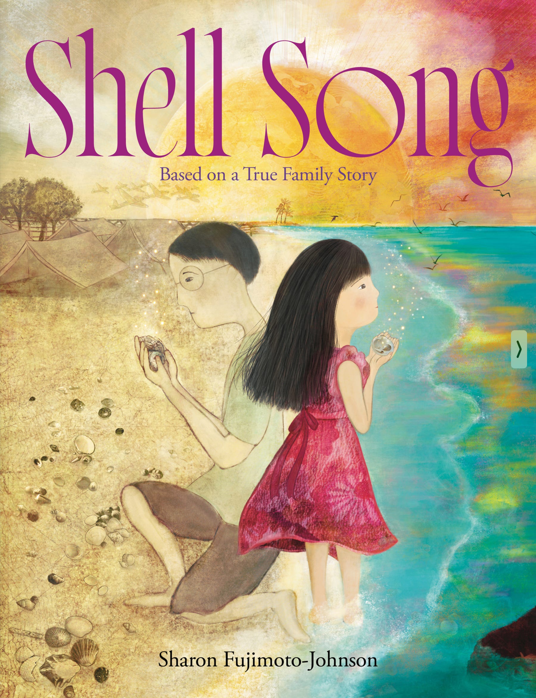 The first book in this series is one we haven’t yet worked with directly, but that we’re planning to use at our Winter Institute in Chicago. Shell Song by Sharon Fujimoto-Johnson tells the true story of her grandfather’s internment in Honouliuli Camp in Hawaiʻi during World War II. In the camp, the grandfather spends his time collecting shells:
