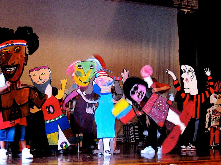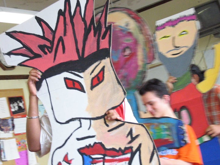 Newman and Kinslow created a safe space for students to tell their stories of coming to the United States. Newman, whose parents were Holocaust survivors, began the class by telling the story of his family’s escape from Europe to the United States in the 1940s. Throughout the school year Newman and Kinslow shared stories about their own lives and invited their students to do the same. Eventually the students staged their stories in the high school theatre with the help of Big Nazo, a puppet theater in Providence. Storytelling wasn’t just a language tool—it was a way to give students a podium, a voice, and a place in their school community.